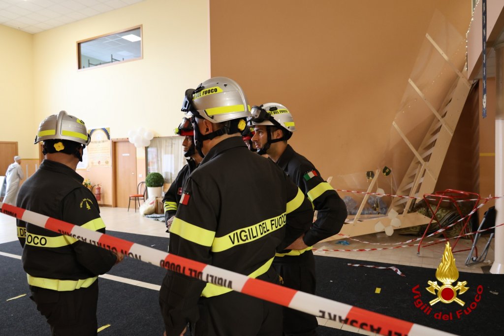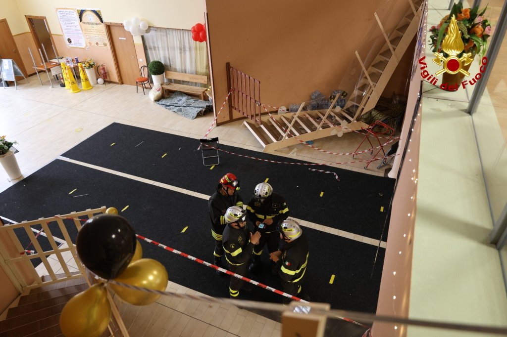 Durante il deflusso una delle due scale semicircolari di metallo si è piegata a metà nel punto di giuntura, facendo precipitare a terra le persone che vi erano sopra. I vigili del fuoco accorsi con il personale di prima partenza, hanno fatto evacuare del tutto la struttura, mentre i feriti sono stati assistiti dal personale del Suem accorsi con più ambulanze e l’automedica. I cinque feriti, di cui uno in codice giallo, sono stati trasferiti in ambulanza in ospedale. I tecnici dei vigili del fuoco presenti sul posto con più funzionari guidati dall’ing. Leonardo Rubello stanno eseguendo un sopralluogo per determinare le cause dell’incidente. Sul posto la polizia di stato e quella locale. Intervento ancora in corso.