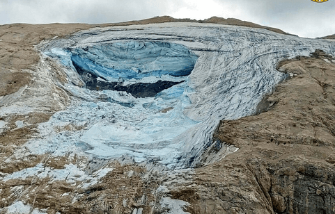 Il 3 luglio 2022 si staccarono improvvisamente dal ghiacciaio della Marmolada, nelle Dolomiti, circa 64.000 tonnellate di acqua, ghiaccio e detriti rocciosi, dando origine ad una valanga che ha travolto e ucciso 11 alpinisti, mentre altri 7 sono rimasti feriti.