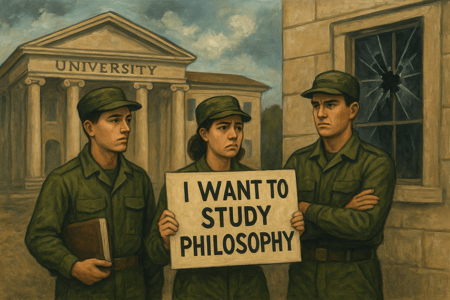 Il Capo di Stato Maggiore dell’Esercito, Carmine Masiello, spiega di aver provato ad avviare — pensate un po’ — un corso di laurea in Filosofia per una quindicina di giovani ufficiali. L’idea gli sembrava pure sensata: ampliare l’orizzonte, sviluppare pensiero critico, uscire dagli schemi.