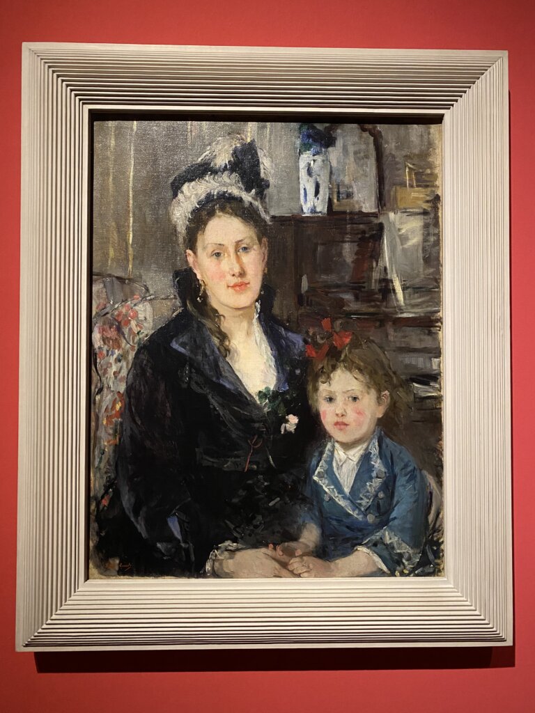 Tra gli ultimi capolavori, ma non per questo meno importante, lo spettatore incontra l’unica donna impressionista in mostra Berthe Morisot, nota per i suoi dipinti con scene domestiche ispirate al mondo borghese:con Ritratto di Madame Boursier e di sua figlia l’artista si concentra sulla vita della donna e sul dolce universo della maternità racchiuso nel gesto di Madame Boursier che si adopera di mettere in posa sua figlia vestita da festa ed rappresenta l’immagine scelta per la copertina del catalogo e della locandina pubblicitaria della mostra.