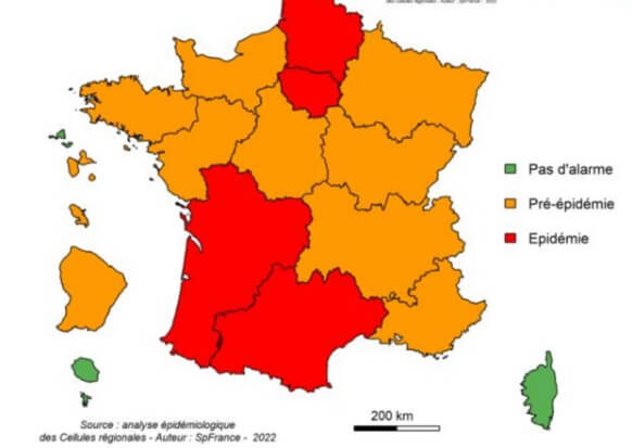 Quattro regioni sono particolarmente colpite: Hauts-de-France, Île-de-France, Occitanie e Nouvelle-Aquitaine. Tutti sono stati posti in “fase epidemica” dall’agenzia sanitaria.
