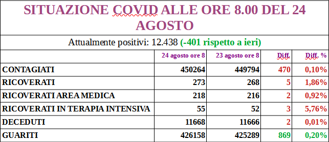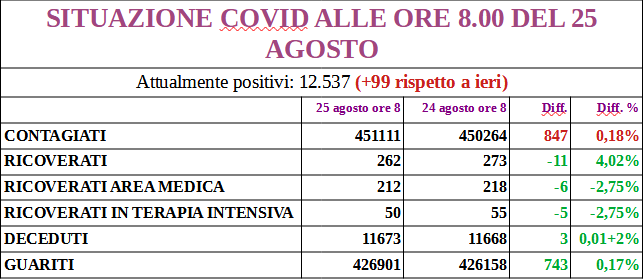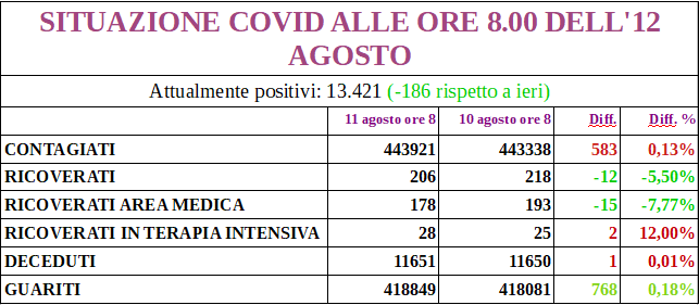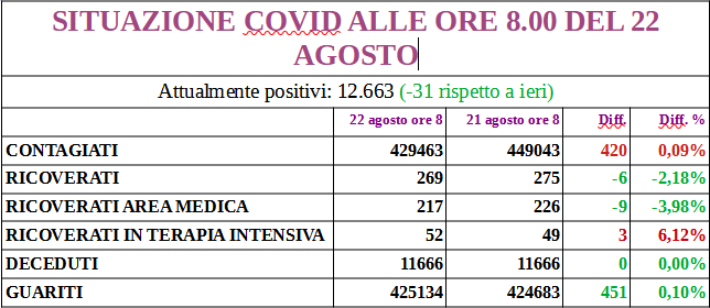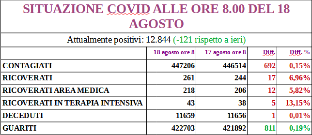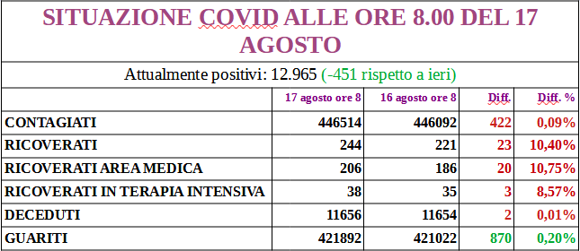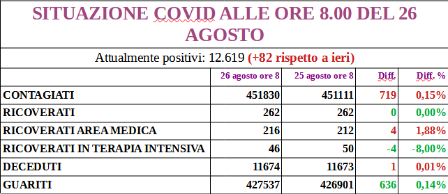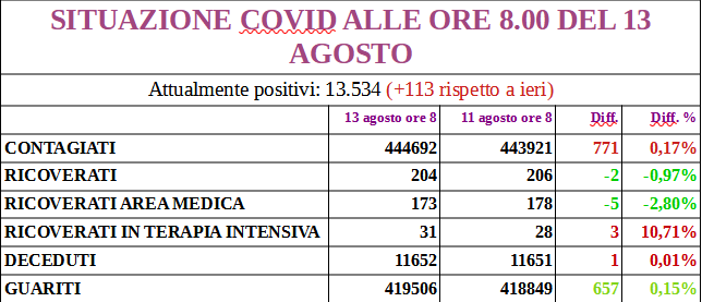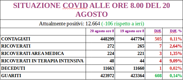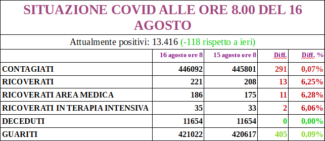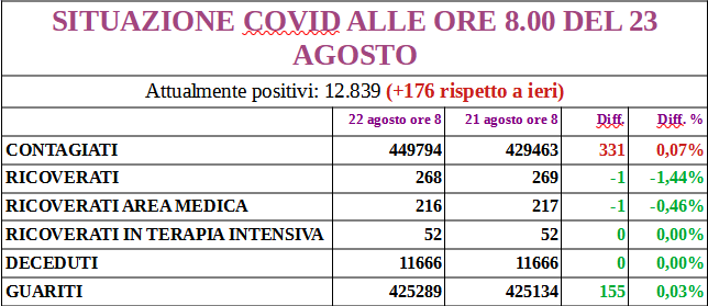 I nuovi positivi sono 319, aggiornando il totale a 13.086; 172 i guariti.