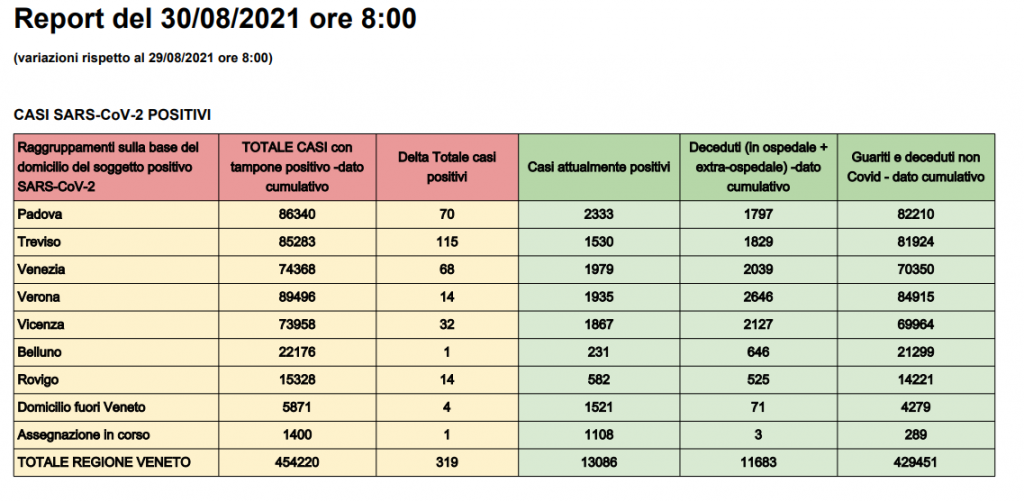 Dati Covid Veneto: 13 ricoveri in più in 24 ore