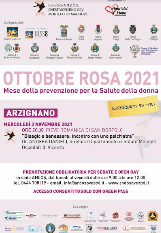 “La malattia al seno colpisce la donna non solo sotto l’aspetto fisico, ma anche psicologico. Per questo da anni offriamo uno specifico supporto alle pazienti che afferiscono alla Breast Unit dell’Ulss 8 Berica a Montecchio Maggiore, centro di riferimento provinciale per la presa in carico completa della donna sotto il profilo della prevenzione, diagnosi, cura e riabilitazione psico-fisica-sociale – afferma Isabella Frigo, presidente del Comitato ANDOS –. L’appuntamento in programma ad Arzignano mira proprio a fornire degli strumenti che possano aiutare la persona a coltivare le condizioni per un miglioramento del proprio benessere psicologico”.