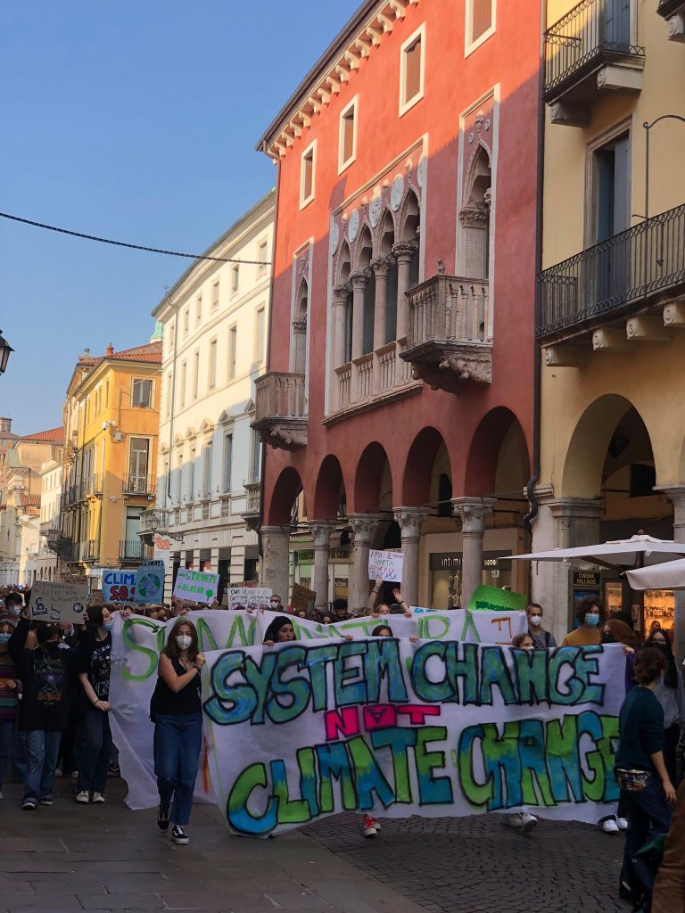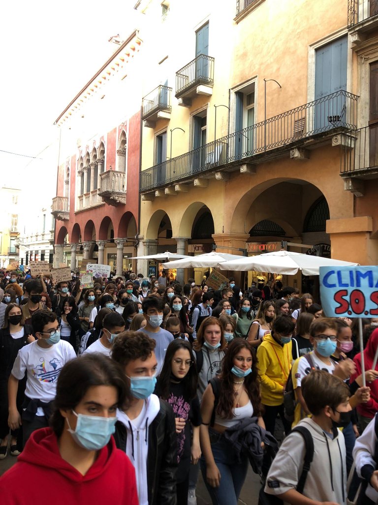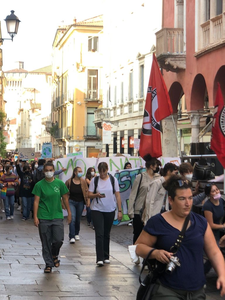 Stamane alle 9.15 centinaia di giovani si sono ritrovati nel piazzale della stazione ed hanno iniziato una marcia che si è snodata per le vie della città (Stazione Viale Roma Palladio e Piazza Matteotti).