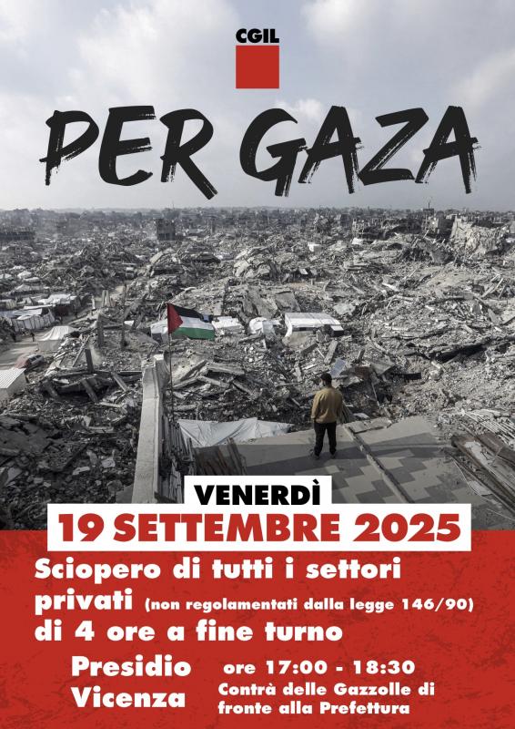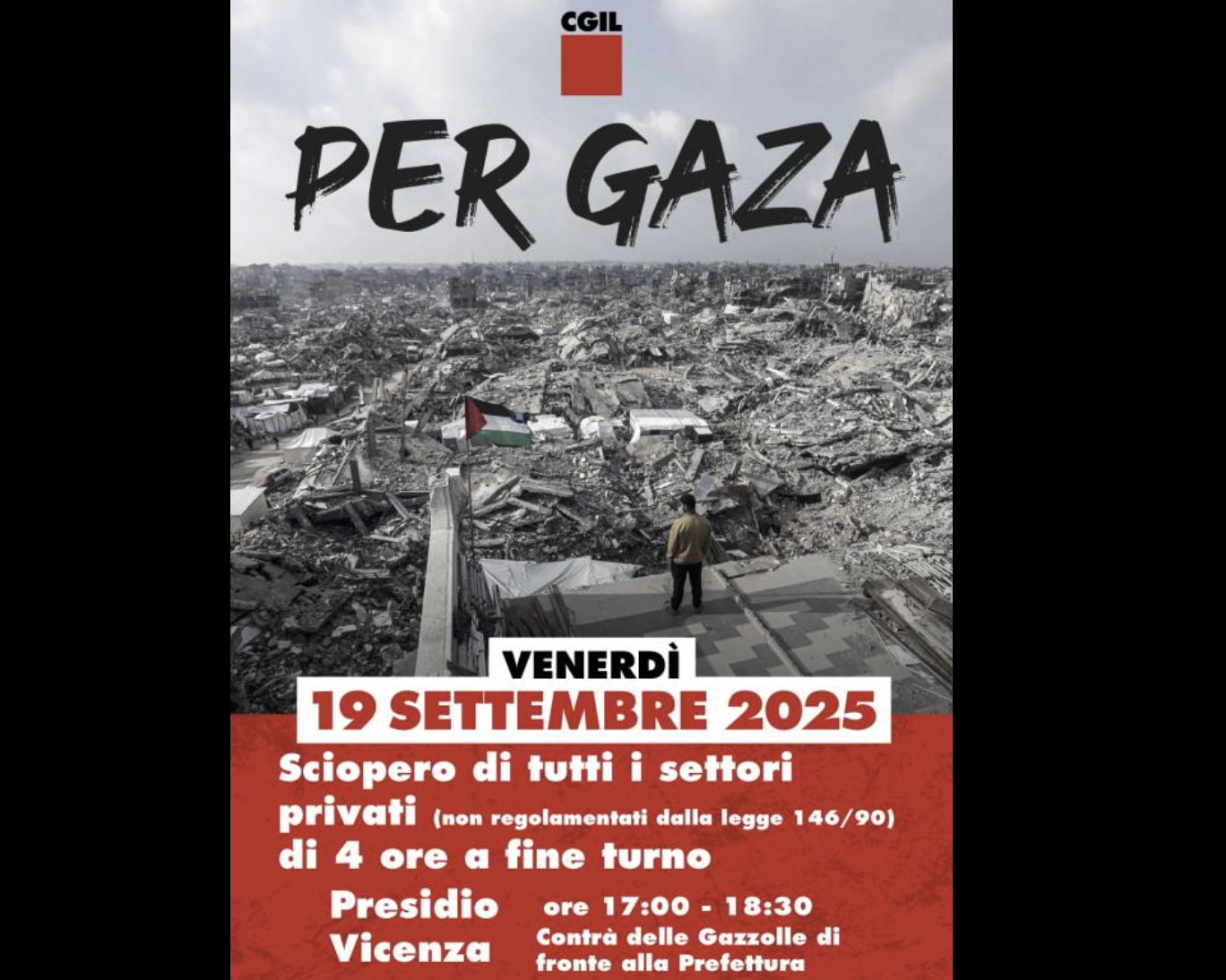 La Cgil di Vicenza, oltre alle 4 ore di sciopero a fine turno nei settori privati, ha promosso un presidio in Contrà delle Gazzolle, davanti alla Prefettura, dalle ore 17.00 alle 18.30.