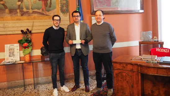 Un assegno del valore di 500 euro è stato consegnato ieri mattina al sindaco Francesco Rucco e all’assessore alle attività sportive Matteo Celebron dal vicepresidente del Vicenza Volley San Paolo Massimo Parlato.