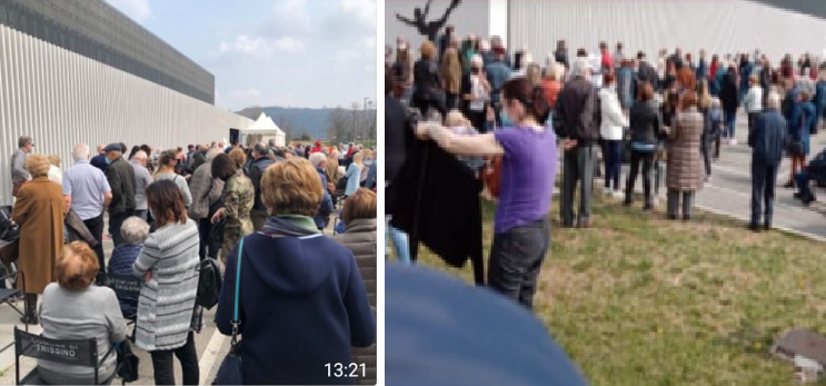 Una delle misure pilota della lotta al contagio è quella di evitare assembramenti. Cosa non accaduta ieri all’hub di Trissino e oggi in Fiera a Vicenza.