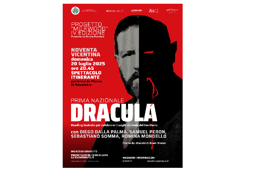 Domenica 20 luglio alle 20.45 Noventa Vicentina ospita la seconda tappa di Dracula, spettacolo teatrale itinerante tratto dal celebre romanzo di Bram Stoker. Un evento che trasforma il centro storico del paese in una scenografia evocativa, capace di fondere teatro, racconto e visioni.
