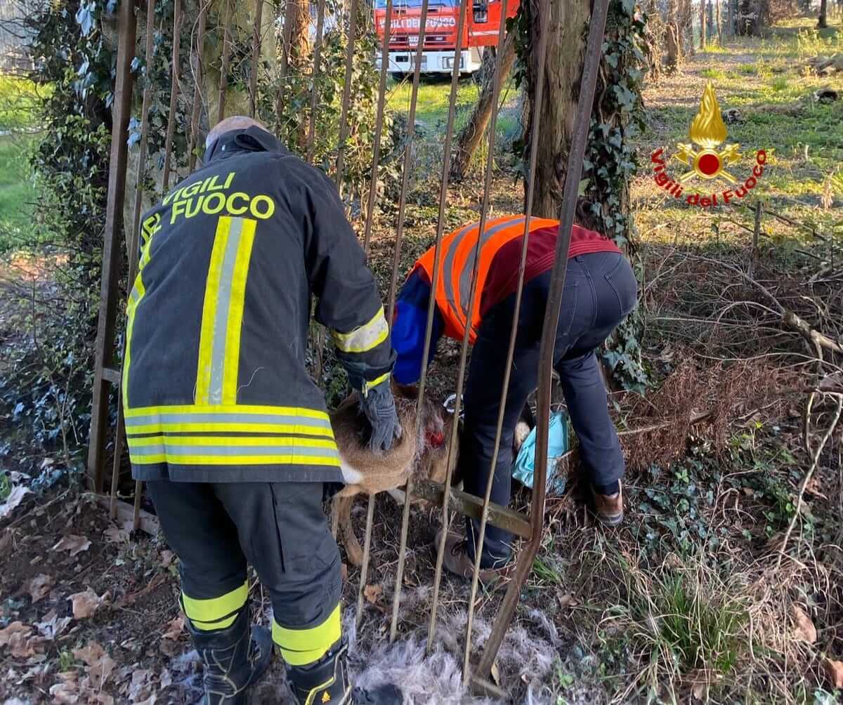 Due interventi di salvataggio animali oggi per i vigili  fuoco.  Il primo intervento questa mattina nei pressi di Via Togarelli a Schio dove un capriolo è finito in una larga canaletta di irrigazione. L’animale è rimasto bloccato in acqua per le sponde di cemento che non riusciva più a risalire. Due operatori SAF (Speleo Alpini Fluviali) sono entrati nel corso d’acqua riuscendo a spingerei e guidare l’animale verso un varco, dove è riuscito a risalire la riva riguadagnando la liberta nel verde. L’altro intervento nel pomeriggio a Vicenza lungo via Postumia, dove un altro ungulato è rimasto bloccato tra le sbarre di un cancello di Villa Lampertico. I pompieri utilizzando un divaricatore hanno allargato le sbarre, liberando l’animale che è rimasto ferito al costato. Il capriolo è stato preso in cura da un volontario del “servizio soccorso fauna” per conto della provincia per essere portato e curato in un centro recupero per animali selvatici.