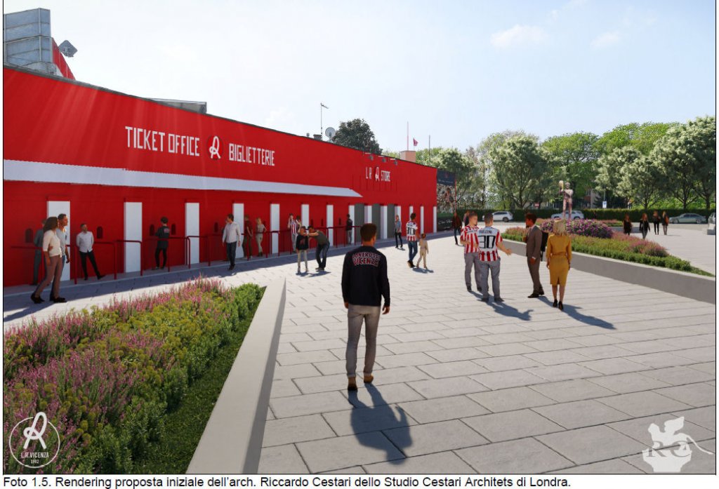 È stato approvato dalla giunta comunale il progetto di fattibilità tecnica ed economica per i lavori di riqualificazione del piazzale antistante lo stadio Menti. A presentare questa mattina l’intervento sono stati il sindaco di Vicenza Francesco Rucco, il vicesindaco con delega ai lavori pubblici e alle attività sportive Matteo Celebron e Paolo Bedin, direttore generale del Lanerossi Vicenza, la cui sede legale sarà proprio al civico 9.
