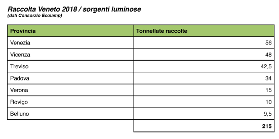 Ecolamp: il Veneto raccoglie 215 tonnellate