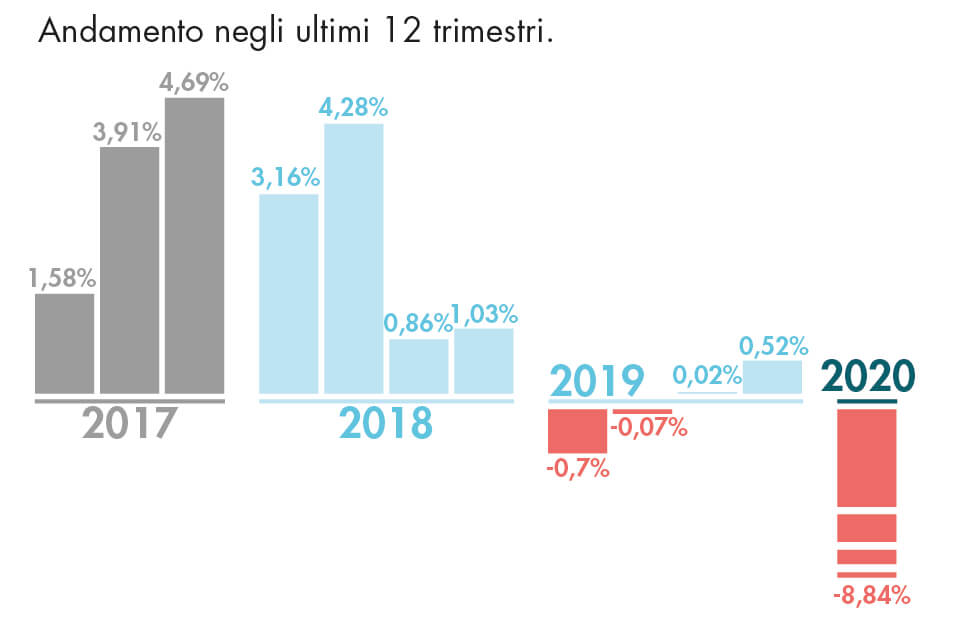 “Dopo il cosiddetto ‘anno bellissimo’, il 2019, che ci è valso l’entrata nell’economia dello zero – continua – il primo trimestre 2020 ci mostra cali che non si vedevano dal 2009, che fu l’anno peggiore della crisi. Però bisogna essere oggettivi, i due momenti non vanno paragonati perché le cause sono chiaramente diverse e quindi anche le risposte devono essere diverse. Certo, sono andamenti che ci danno un parametro per capire in che condizioni siamo”.