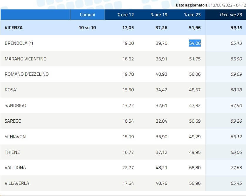 Per quanto riguarda i Comuni del Vicentino al voto: