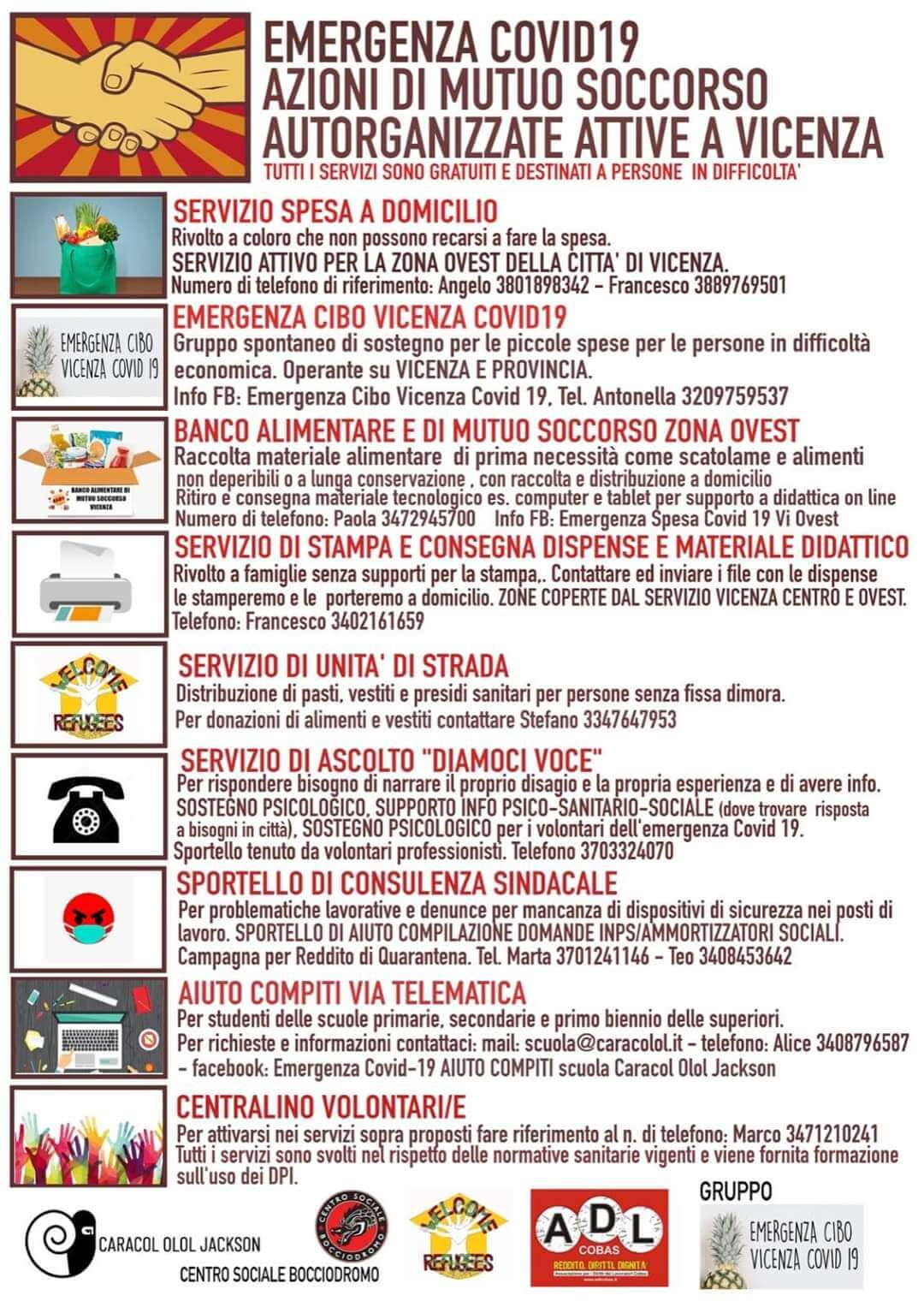 Durante la pandemia molte persone si sono messe in prima linea per aiutare. Antonella Roana, che è una tra queste, racconta la nascita del gruppo di volontari che ha creato: “È iniziata postando su Facebook, sulla mia pagina, un invito a chiedere aiuto. Ha girato per qualche giorno, un semplice non andare a letto senza cena, possiamo dividere. Son cominciate ad arrivare richieste ed ho aperto il gruppo”. Il gruppo si chiama Emergenza Cibo Vicenza Covid 19 e raccoglie 700 membri: “Abbiamo collaborato fin da subito – continua Roana – con Caracol Olol Jackson, Welcome refugees, Bocciodromo, Banco alimentare, Centro aiuto alla Vita, Essere mamme a Vicenza e Adl cobas, ma anche con associazione Arcadia ed altri. Non vogliamo prendere il posto di nessuno, ho solo pensato a quella fascia di persone, i nuovi poveri, gente senza residenza o documenti, lavoratori in nero lasciati a casa, gente che aspetta la cassaintegrazione e che per il pubblico non esiste”. Il gruppo di volontari ha seguito fino ad oggi 55 famiglie, di cui solo 15 sono tornate autonome con la fase 3 della pandemia. “Quando arriva una richiesta – spiega Roana – si crea un micro-gruppo di zona privato, l’unico a cui diamo i dati della famiglia in difficoltà. Si organizza la spesa, si consegna e, uno per gruppo mantiene i contatti con la famiglia. Mediamente, ad ora, siamo a due o più interventi per ogni caso. Lo scopo è di sostenere con cibo e altri beni, come necessario per mamme e neonati o per gli animali, finché, si spera, il pubblico possa dare risposte”.