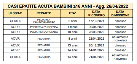 Sono in tutto sette i casi di epatite acuta pediatrica registrati in Veneto e trasmessi dalla Regione al Ministero della Salute.