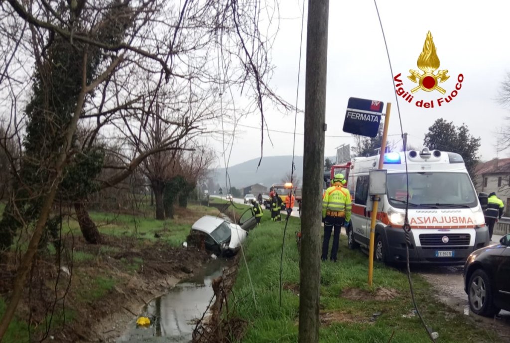 Alle 13:30 circa, i vigili del fuoco sono intervenuti in via San Giovanni lungo la SP 8 a Orgiano per un’uscita di strada autonoma a causa anche del fondo stradale scivoloso: ferita una donna. I pompieri arrivati da Lonigo hanno estratto la conducente, rimasta incastrata nell’abitacolo dell’auto finita in un fossato a bordo strada. La donna, una 41 enne di origini moldave residente a Sossano, iniziali P.B., è stata presa in cura dal personale del SUEM 118 ed elitrasportata in ospedale. Non correrebbe pericolo di vita. La polizia locale ha eseguito i rilievi del sinistro. Le operazioni di soccorso dei vigili del fuoco sono terminate dopo circa un’ora. Sul posto oltre ai Vigili del Fuoco anche la Polizia Locale dell’Unione Comuni Basso Vicentino Distretto VI3D