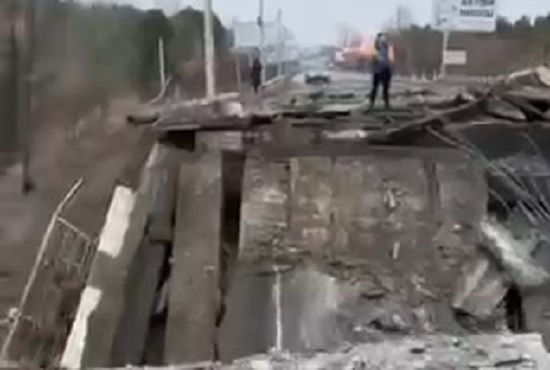 Un secondo video documenta la distruzione del ponte che collega zona periferica al centro di Kiev. Nella notte, riferiscono i parenti del vicentino Francesco Galuppo, sono continuati i bombardamenti. Stanotte e stamattina concentrati su arterie e ponti con chiaro obbiettivo di isolare citta.