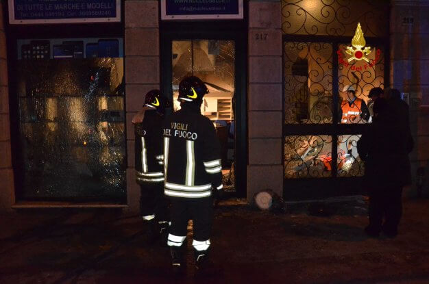 Alle 20.40 di ieri sera, i vigili del fuoco sono intervenuti in Corso San Felice a Vicenza per un’esplosione e un incendio: nessuna persona è rimasta ferita. L’esplosione e le fiamme hanno completamente devastato un negozio laboratorio di riparazione pc oltre ad aver demolito un muro divisorio e fatto saltare i vetri dell’intera palazzina di tre piani. I vigili del fuoco accorsi con due squadre dalla vicina sede, hanno spento il rogo del negozio, andato completamente distrutto. Le quattro famiglie residenti nella palazzina sono state fatte evacuare. Sono in corso le valutazioni da parte dei tecnici dei vigili del fuoco per stabilire le cause che hanno causato l’esplosione. La polizia di stato e quella locale hanno deviato il transito della strada per permettere i soccorsi. Sul posto anche il vice sindaco della città.
