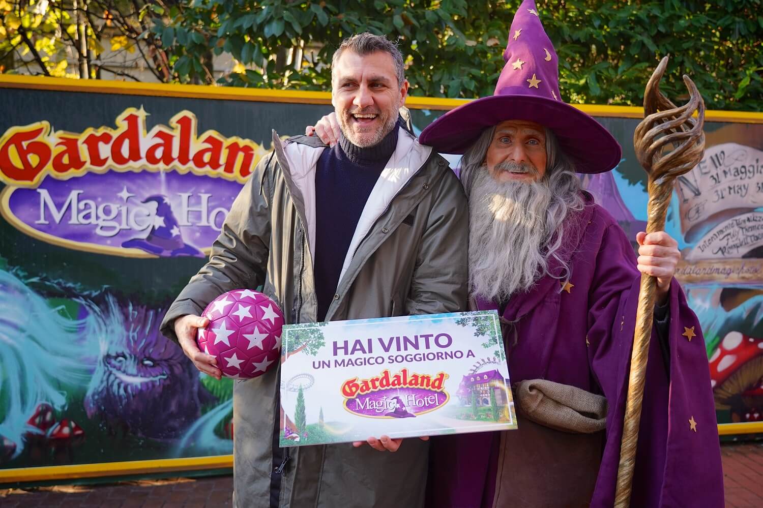Ospite di Gardaland in occasione di Gardaland Magic Winter, il neo-papà Christian Vieri – ancora emozionato dalla nascita della piccola Stella, avuta dalla sua compagna ed ex velina Costanza Caracciolo – sabato si è lasciato coinvolgere dalla magica atmosfera e dal divertimento nel Parco. Momento fondamentale della giornata è stato l’incontro con il Grande Mago, protagonista dell’Anno della Magia e in particolare di Gardaland Magic Hotel, la struttura interamente tematizzata che sarà inaugurata il prossimo maggio 2019. Imbattendosi nel mitico Bobo, il Grande Mago dal cappello viola e dalla lunga barba bianca non ha perso occasione di lanciare, in diretta sui canali social del Parco, una sfida di palleggi al “grande mago del pallone”, che ha permesso all’ex calciatore di aggiudicarsi la possibilità di essere il primo ospite di Gardaland Magic Hotel. Insieme alla piccolissima Stella e all’affascinante Costanza, Bobo potrà scegliere di alloggiare in una delle 128 ampie camere tematizzate in tre differenti e suggestive ambientazioni: Foresta incantata, Cristallo Magico e Grande Mago. Chissà quale sceglierà il neo papà per alloggiare con la sua nuova famiglia! Ma non è tutto, perché rispondendo correttamente all’indovinello del Grande Mago, Vieri ha avuto la possibilità di scoprire e svelare in anteprima assoluta anche la nuova Attrazione 2019 di Gardaland, la Foresta Incantata. Accessibile attraverso una miniera magica, la Foresta Incantata sarà il percorso di un’esperienza favolosa in un mondo straordinario dove tutto può accadere. Un percorso tra piante magiche e creature fantastiche che la Strega Malvagia minaccia di tramutare in pietra. Saranno proprio i piccoli Ospiti di Gardaland che, diventando apprendisti, dovranno aiutare il Mago a rompere l’incantesimo salvando la Foresta Incantata e i suoi abitanti. L’ex calciatore – da sempre molto amato dal pubblico e con un forte seguito sui canali social – ha attraversato il Parco, interamente addobbato a tema natalizio, accompagnato dalla simpatica mascotte Prezzemolo; intorno a loro, sulle note della Magic Winter Band, si sono esibiti gli artisti del Parco, Dame e Principi della Neve. Bobo, trasformatosi da poco in scatenato DJ, si è poi cimentato sulle attrazioni del Parco per vivere il brivido dell’adrenalina. In particolare, il Grande Mago lo ha accompagnato in una emozionante discesa in verticale a bordo di Oblivion The Black Hole, per un coinvolgente e divertente giro sul roller coaster. Alla fine della visita, sempre scortato dal suo speciale cicerone, l’ex calciatore ha fatto un bagno di folla, non perdendo così l’occasione di scattare selfie con i fan e firmare autografi a grandi e piccoli Ospiti.