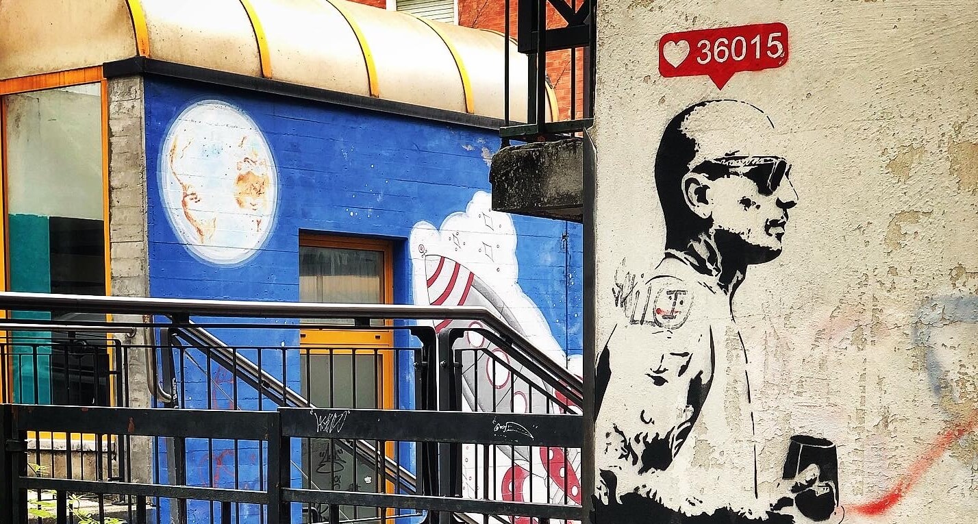 Evyrein in azione a Schio: il noto artista, originario di Schio, ma padovano d’adozione, ha colpito la notte scorsa proprio nella sua città natale, raffigurando un uomo, con un calice di vino in mano rivolto verso l’alto, appoggiato ad un angolo in uno degli scorci più belli del centro cittadino. Sopra la sua testa, l’icona dei like di un famoso social network, riportante la cifra 36015, ovvero il codice postale scledense. L’artista, del quale si sa solo che è nato in provincia nel 1981, potrebbe aver fatto l’opera per depistare dalla sua identità. Da capire se questa è stata fatta per depistare dalla sua identità o come omaggio alla città dove è cresciuto.