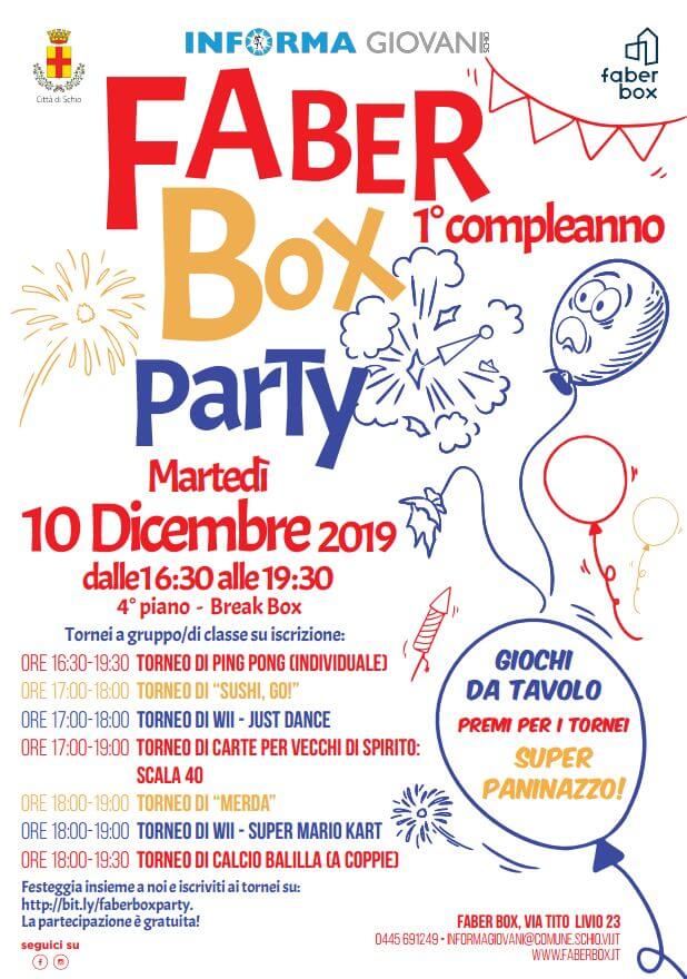 Il pomeriggio, invece, è Faber Box Party! Dalle 16.30 alle 19.30, presso la Break Box al piano 4, i ragazzi potranno provare nuovi giochi in scatola e partecipare a diversi tornei, dal più tradizionale gioco di carte “Scala 40” al più tecnologico con l’utilizzo della WII – Just Dance. Sono previsti anche premi per i vincitori!