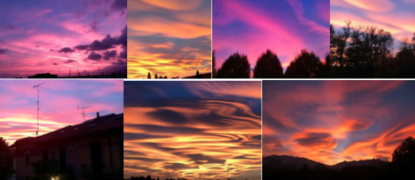 In tutto il Veneto – anzi, in tutto il Nord Italia – ieri sera è stato segnalato lo spettacolare tramonto, che ha attirato l’attenzione di milioni di persone che ne hanno condiviso le foto sui social. I colori del crepuscolo erano particolarmente vividi, e il tutto era ancora più suggestivo dalla particolare conformazione delle nubi. Cos’è successo? Quelle che vedete in queste immagini, un puzzle delle moltissime condivisi sui social network, sono delle nubi lenticolari. Lo spiega bene il meteorologo Lorenzo Catania:“Sono tipiche formazioni nuvolose che si formano in presenza di due ingredienti: vento forte e una catena montuosa che disturba il flusso dell’aria. Ieri infatti la nostra penisola è stata attraversata da un fronte freddo proveniente da nord-ovest. Questo passaggio sopra alle Alpi ha causato l’alzarsi di un vento caldo e impetuoso, il Foehn, che sta spazzando l’intera pianura padana. Le nuvole che vedete sono tipiche di queste “cadute favoniche”. I colori però sono un’altra storia: perché il Foehn sta attraversando le valli del Piemonte occidentale, invase dalle fiamme da ormai più di una settimana, e alimenta gli incendi ulteriormente con raffiche a oltre 100 km/h. Questa cenere ha ormai invaso tutta la pianura padana, e agisce esattamente come nel 1815 agì la cenere vulcanica del Tambora: filtra il Sole, aumentando lo scattering atmosferico e generando dei colori quasi da film fantasy. Ci sono foto anche da altre località italiane, come Roma, che presentano colori simili, perchè anche in Corsica sono attivi dei roghi boschivi, e il vento soffia direttamente dall’isola verso il centro Italia. Inoltre questa perturbazione è anche carica di sabbia sahariana, che ha fatto un bel giro: arriva dall’Artico, dopo che era stata portata fino lassù dai cicloni dei giorni scorsi, tra cui l’ormai famoso Ophelia”. Quindi, ecco spiegato perché un tramonto del genere in Veneto, anzi in tutto il Nord Italia.