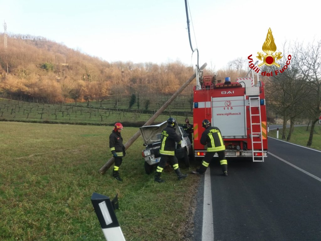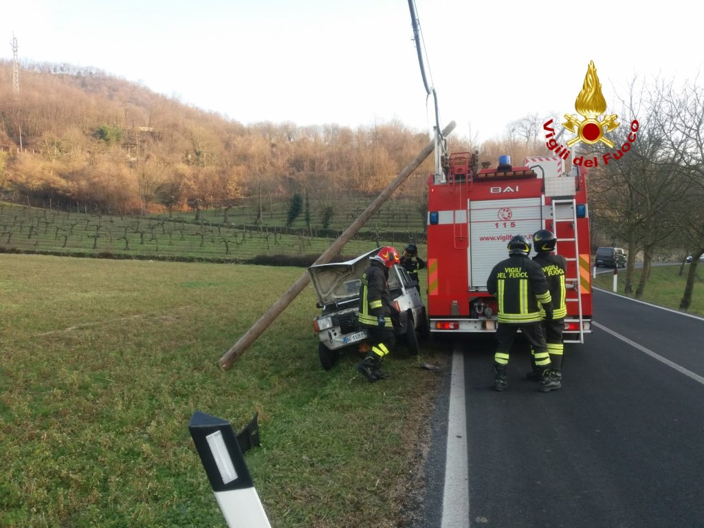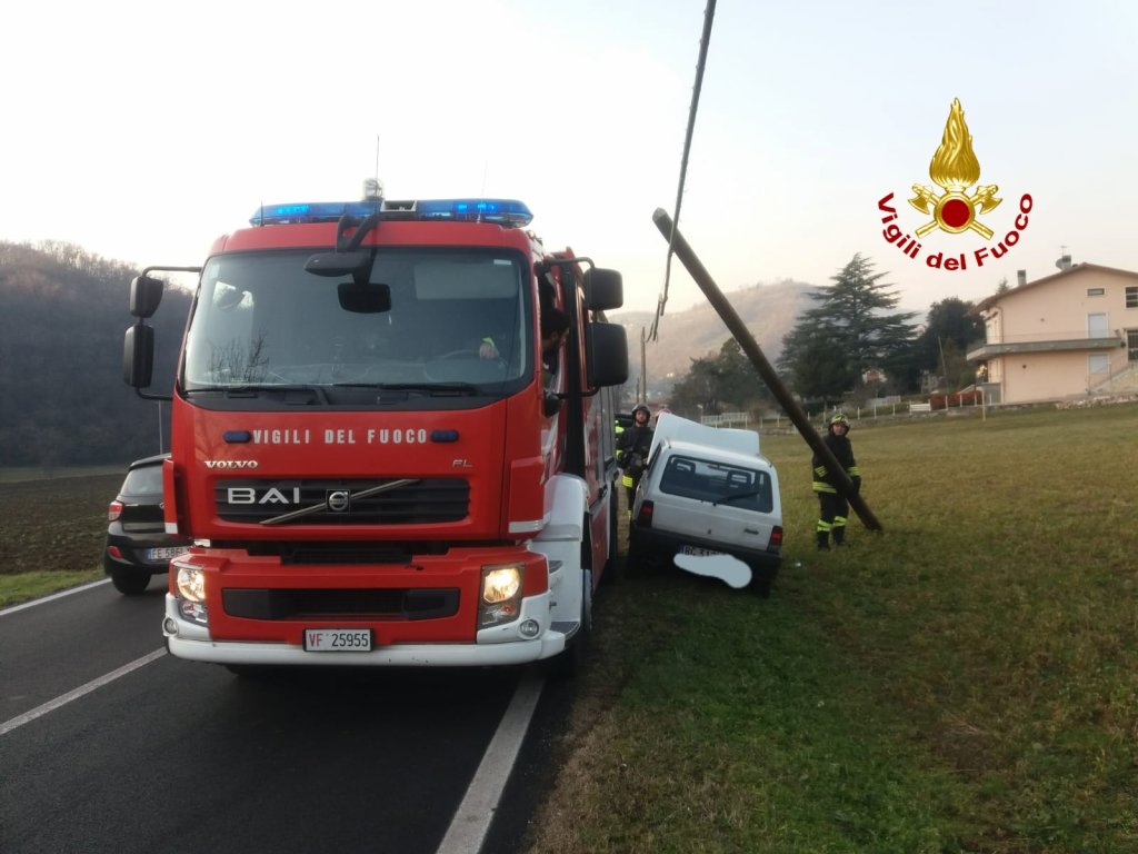 Poco dopo le 15:00, i vigili del fuoco sono intervenuti in località Peschiera dei Muzzi lungo la SP 35 in via Santa Cecilia a Castelgomberto per un’auto finita contro un palo della linea telefonica a bordo strada. I pompieri arrivati da Arzignano hanno messo in sicurezza il palo e la Fiat Panda. Nessuna traccia dell’autista allontanatosi prima dell’arrivo dei soccorsi. I carabinieri hanno eseguito i rilievi del sinistro. Le operazioni di soccorso dei vigili del fuoco sono terminate dopo circa un’ora e mezza.