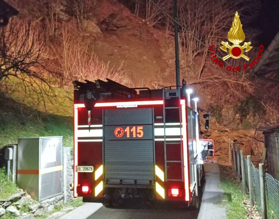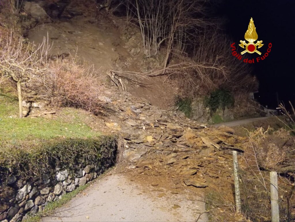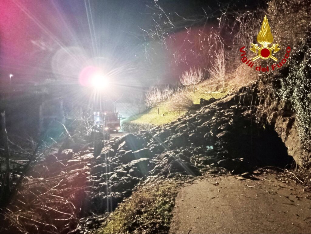 Frana a Valli del Pasubio: strada bloccata, intervento dei vigili del fuoco