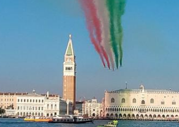 Decine di telefonate sono giunte stamane alle forze dell’ordine da parte di abitanti del centro storico di Venezia allarmati per il persistente passaggio, accompagnato da un forte frastuono, delle Frecce Tricolori sopra la laguna.