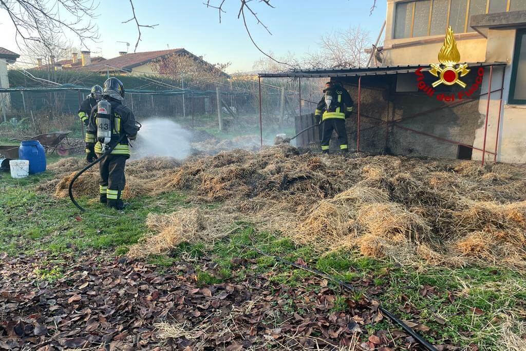 Da poco dopo le 15:30, i vigili del fuoco sono impegnati in Via Ca’ Minotto, a Rosà per l’incendio di una ventina di balle rettangolari di paglia, poste all’esterno di un capannone. I pompieri arrivati da Bassano e Vicenza con un’autopompa, un’autobotte e 7 operatori, hanno subito circoscritto le fiamme evitando il coinvolgimento del vicino deposito. Ancora in corso le operazioni di bonifica e l’accertamento delle cause.