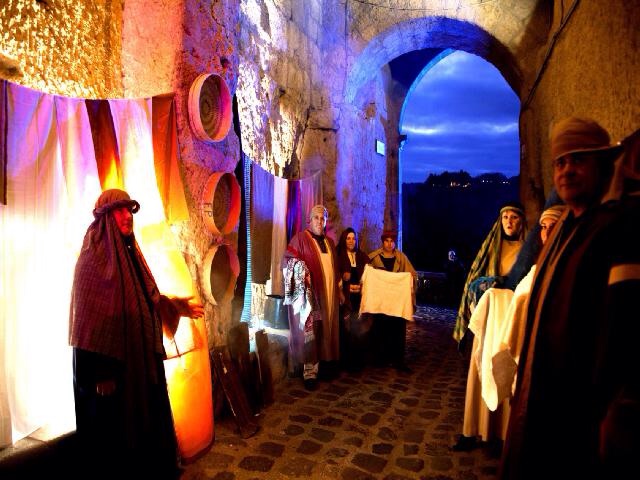Qui si svolge la rievocazione della natività, con la riproduzione di un insediamento romano, di accampamenti beduini, del mercato e della via in cui artigiani e commercianti vendono stoffe, frutti e spezie, mentre è attraversata dai Re Magi che giungono dopo il loro lungo viaggio dall’Oriente fino alla capanna dove Gesù bimbo viene al mondo circondato dalla sua Sacra Famiglia.