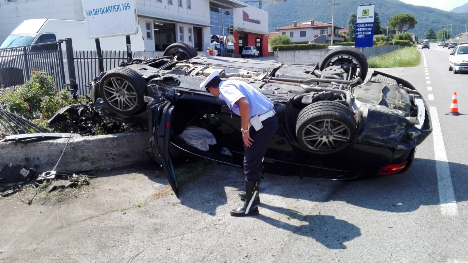 Brutto incidente martedì pomeriggio poco dopo le 14, fortunatamente senza gravi conseguenze per F.F., uomo 49enne di Vicenza, alla guida dell’autovettura AUDI A6 stava percorrendo via Monte Summano a Zanè con direzione Piovene Rocchette. Giunto all’altezza del civico 50, per cause in corso di accertamento, ha perso il controllo del veicolo invadendo la corsia opposta e uscendo dalla sede stradale. Ha abbattuto un muretto di recinzione delle acque di scolo, per poi ribaltarsi e finire la corsa sopra la recinzione metallica di un’autofficina. Il conducente, unico presente nell’auto, ha riportato solo lievi lesioni.
