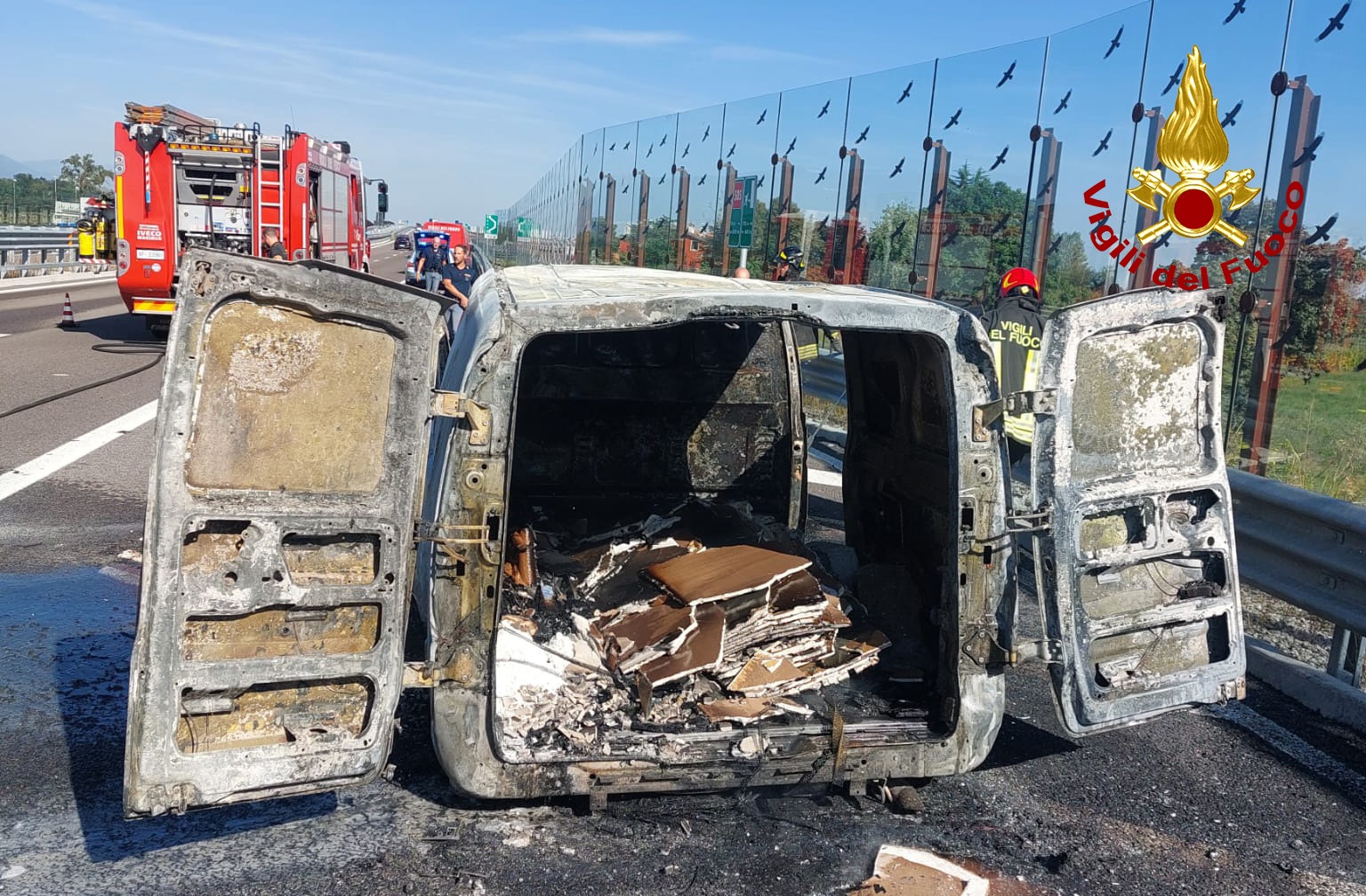 Poco prima delle 15 di oggi, i vigili del fuoco sono intervenuti lungo la super strada pedemontana veneta tra gli svincoli di Breganze e Marostica in direzione Treviso per l’incendio di un furgone: nessuna persona è rimasta ferita. L’autista mentre stava percorrendo la superstrada si è accorto che qualcosa non andava, ha accostato ed è sceso, mentre il mezzo ha preso fuoco. I vigili del fuoco arrivati da Bassano del Grappa, hanno spento il furgone andato completamente distrutto. Sul posto il personale ausiliario della superstrada. Le cause dell’incendio di probabile natura elettromeccanica sono al vaglio della squadra intervenuta. Le operazioni di completo spegnimento e raffreddamento del mezzo da parte dei vigili del fuoco sono terminate alle 16:15.