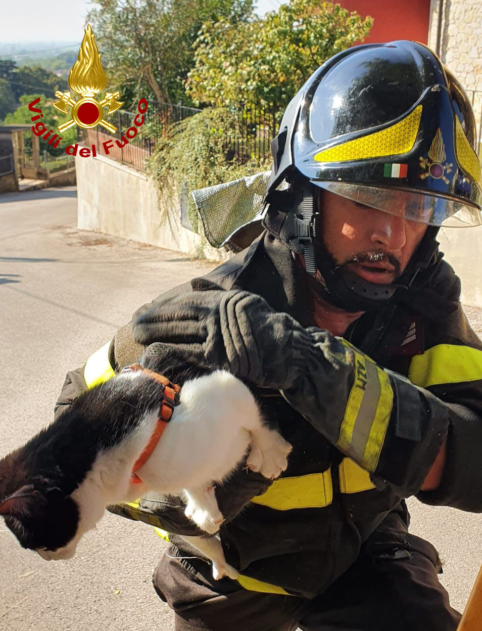 Gattino bloccato su un albero da ieri, salvato dai pompieri (FOTO)