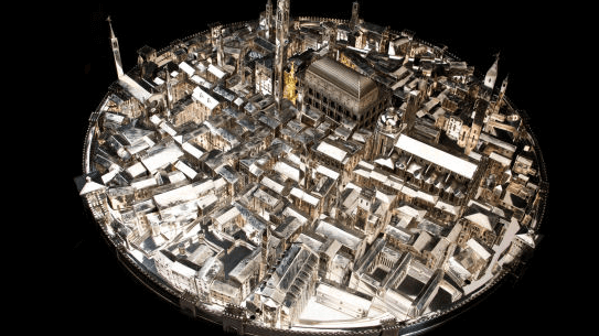 Il progetto del “Gioiello” ha coinvolto in 4 anni 200 donatori, commercianti, aziende e istituzioni per riportare alla conoscenza e poi alla ricostruzione del voto per onorare la patrona di Monte Berico di un modello ideale della città, che «ha da durar perpetuamente et di andar in processione» secondo le parole del consiglio cittadino ai primi mesi del 1577 quando il modello venne eseguito con il parere «de molti eccellentissimi maestri de Venetia et di messer Andrea Palladio» (Barbieri 1980, p. 162). Nonostante le razzie di preziosità perpetrate nelle campagne d’Italia di Napoleone, quel voto è stato rispettato, dato che sono bastati sei dipinti ad olio conservati in altrettanti istituti, un concorso vinto dall’architettoRomano Concato nel 2010, per fare si che non tutto fosse perduto. A questa capacità progettuale va aggiunta la straordinarietà dell’intero sistema dell’oreficeria vicentina, capace di ricostruire un oggetto antico partendo dalle nuove stampanti 3D PLM della Legor Group, con le finiture secondo tradizione del maestro argentiere Carlo Rossi e aggiungendo a queste elementi di ricercatezza come la piccola “Rua”in oro di Chimento Gioiellieri o il quadrante della torre Bissara in smalto di Oreficeria Soprana, senza contare quanti hanno saputo eseguire le stesse viti in argento massiccio, le targhe incise, nonché la base di sostegno per il Museo Diocesano, dove il Gioiello è sempre esposto al pubblico. Il Gioiello di Vicenza è rinato con il patrocinio dalla Regione del Veneto, Comune di Vicenza, Consiglio Notarile dei distretti riuniti di Vicenza e Bassano d.G., Museo Diocesano di Vicenza, Confartigianato Vicenza, FAI Fondo Ambiente Italiano-del. di Vicenza, Le Botteghe Storiche di Vicenza ed è promosso da Comitato per la Rua, Diocesi di Vicenza – Ufficio per i Beni Culturali, Festival Biblico, Gioielleria Soprana, Pro Loco Postumia, VAGA – Ass. giovani architetti della provincia. Con il sostegno di Argenteria Rossi, Vi1544, Legor Group S.p.A., Torneria Nicoletti, Chimento Gioielli, Visentin Casa, Corà Timber, Caoduro S.p.A., Arte Ricamo S.n.c., AreaArte.