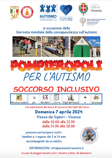 «Basilica palladiana e piazza dei Signori accoglieranno anche quest’anno alcuni degli eventi pensati per aumentare la consapevolezza dell’autismo nella popolazione – spiega l’assessore alle politiche sociali Matteo Tosetto -. In particolare, il 7 aprile con Pompieropoli i più piccoli potranno partecipare, al fianco dei Vigili del Fuoco, ad un’esercitazione pratica realizzata attraverso un percorso inclusivo che facilita la fruizione da parte di bambini con autismo».«Secondo il report dell’Istituto Superiore di Sanità, in Italia, un bambino su 77 nati manifesta un disturbo dello spettro autistico. In particolare, la provincia di Vicenza manifesta nell’ultimo anno un aumento di circa il 17% di diagnosi (Report UAT Vicenza 2022). Questo aumento è dovuto sicuramente ad una sempre più puntuale e precoce diagnosi. Autismo Triveneto supporta costantemente circa 124 famiglie del territorio provinciale attraverso una variegata tipologia di attività. Al tempo stesso l’associazione si fa portavoce delle istanze delle famiglie con autismo partecipando come referente provinciale al Tavolo Tecnico Regionale sull’autismo», dichiara Antonella Dalla Pozza, presidente di Autismo Triveneto.