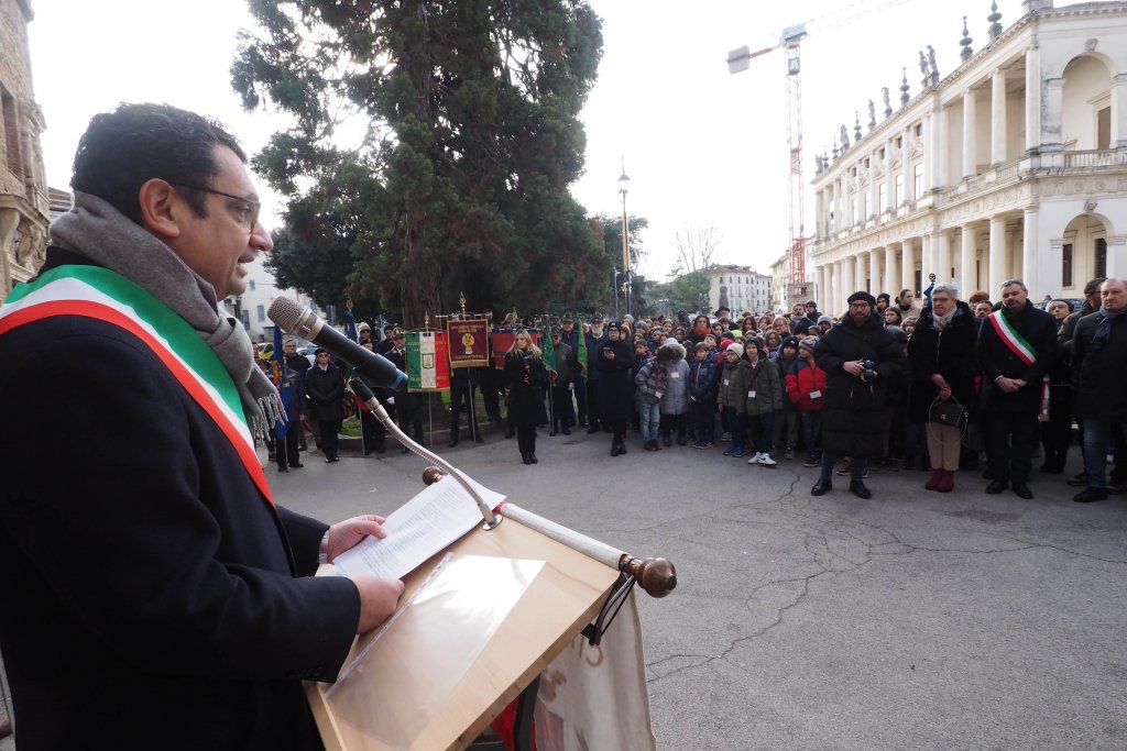 La cerimonia si è aperta osservando un minuto di silenzio in onore di tutte le vittime della persecuzione politica, della discriminazione razziale e della deportazione nei campi di concentramento, che culminarono con la morte di migliaia di prigionieri, tra i quali oltre diecimila internati militari vicentini, e lo sterminio del popolo ebraico nei lager nazisti.