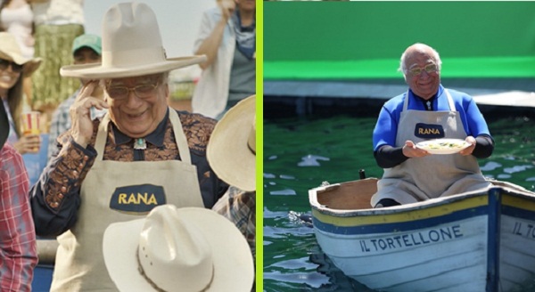 Produzione hollywoodiana per il re veneto del tortellino, Giovanni Rana. Prima è sbarcato con il prodotto – i tortellini e le specialità alimentari della casa – poi Giovanni Rana è piombato sulle tv di tutta America per il nuovo spot made in Usa della sua azienda. Una campagna pubblicitaria girata ad Hollywood, dove l’imprenditore veronese è ancora ‘one man show’, protagonista di una serie di gag improbabili ma divertenti: Rana che cerca di far assaggiare i tortelloni al cowboy del rodeo, vestito da avvocato che offre un piatto di pasta al detenuto in carcere, Rana volontario che offre i tortelli ai maratoneti. “Buon appetito, for you!” è lo slogan che ripete nel filmati girati negli studios di Los Angeles.