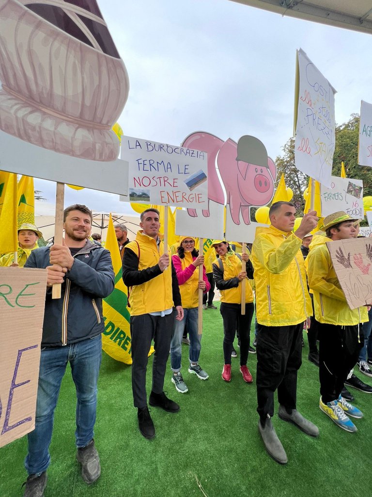 Sui cartelli dei manifestanti si legge “Senza agricoltura non si mangia”, “Lavoriamo 24 ore per il contatore”, “Fermiamo le speculazioni”, “Mungiamo le mucche, non gli allevatori”, “No Farmers No Food”, “La burocrazia uccide i campi”. Molti hanno portato le proprie produzioni (salumi, formaggi, frutta specialità locali) messe a rischio dai rincari energetici.