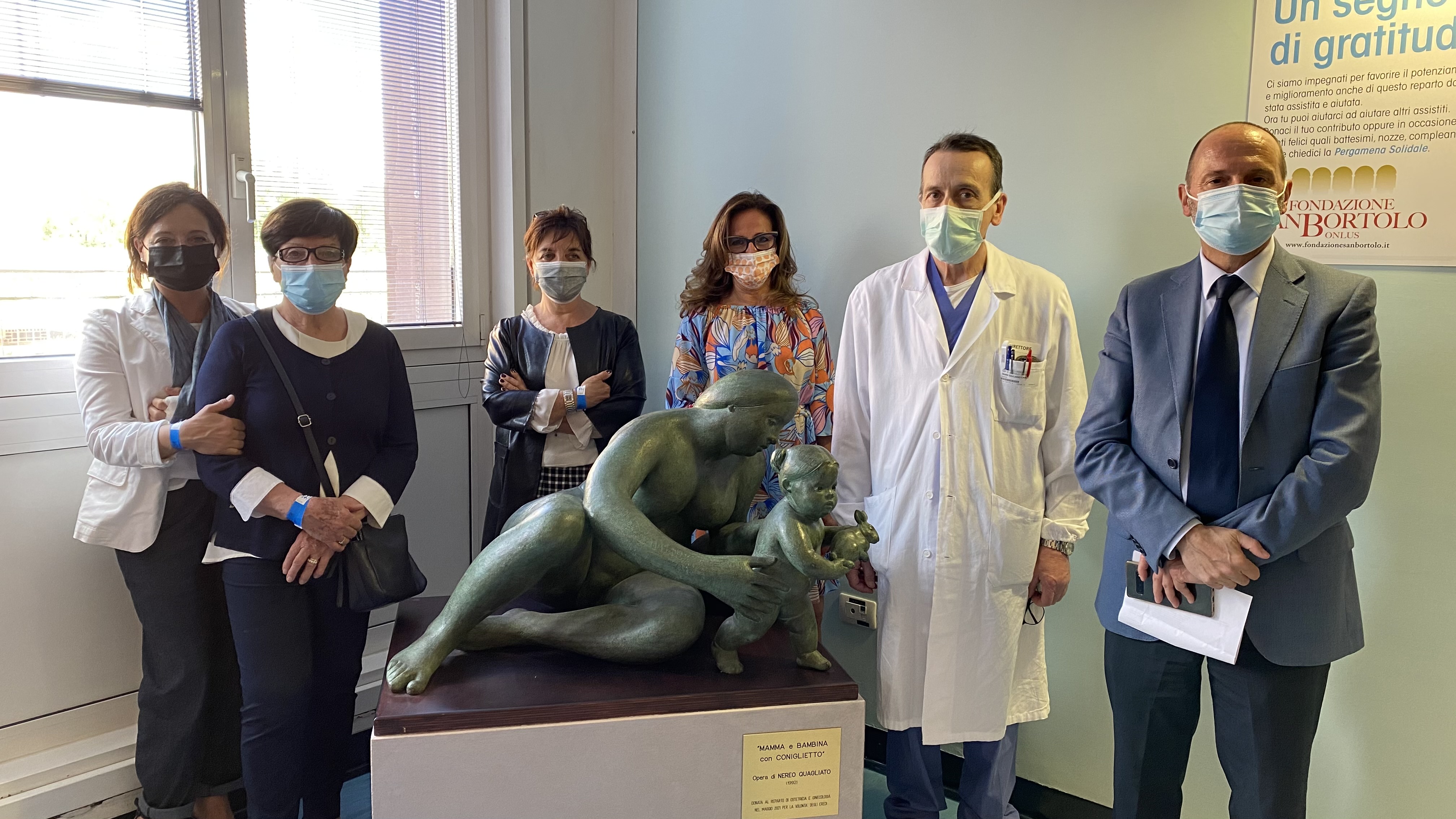 Gli eredi di Nereo Quagliato donano statua in bronzo al reparto di ostetricia del San Bortolo