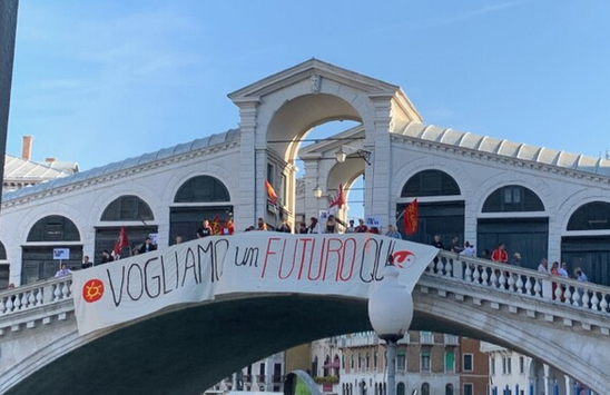 Gli studenti appendono striscione a Rialto: “Vogliamo un futuro qui”