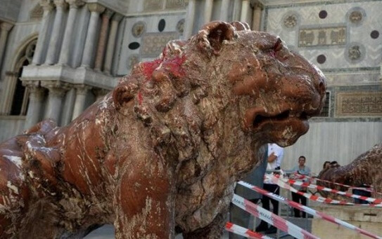 Gli studenti che hanno imbrattato il leoncino di Venezia si scusano con il sindaco