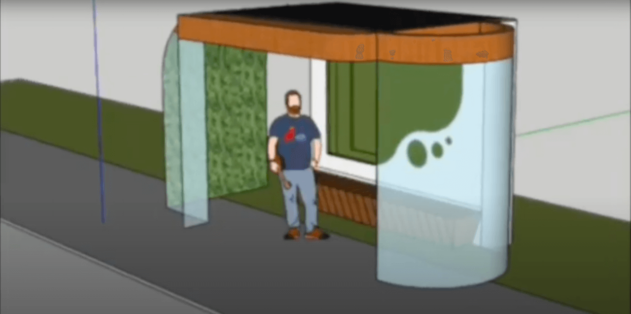 I ragazzi dell’istituto di Schio hanno presentato un progetto dal titolo “Green Stops”, incentrato sull’idea di realizzare strutture definite “Alberi liquidi”, un nuovo modello di fermata del bus sostenibile, che presenta una parete con una vasca contenente microalghe con la funzione di purificare l’aria.