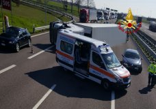 Dalle 10 circa, i vigili del fuoco stanno operando lungo l’autostrada A4 a Grisignano del Zocco nei pressi della rampa d’immissione in direzione Milano per un autoarticolato rovesciato sulla carreggiata: due i feriti. Il primo soccorso ai due occupanti della cabina del mezzo pesante è stato dato da due vigili del fuoco del comando di Trieste, che per motivi di servizio si stavano recando a Brescia, i quali hanno dato l’allarme oltre ad estrarre i due feriti. La squadra del comando di Vicenza ha messo in sicurezza il mezzo mentre i due feriti sono stati presi in cura dal personale del Suem 118 per essere portati in ospedale. Sono ora in corso le operazioni di recupero del camion ungherese che trasportava carne per liberare le corsie autostradali. Il traffico al momento scorre in direzione ovest su un’unica corsia.