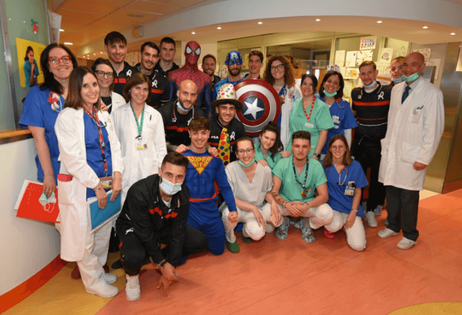 Nella giornata di oggi un gruppo di calciatori del L.R. Vicenza, mascherati per carnevale, ha fatto visita ai piccoli pazienti della Pediatria, distribuendo doni e tanti sorrisi, regalando così ai bambini ricoverati una mattinata diversa dalle altre.