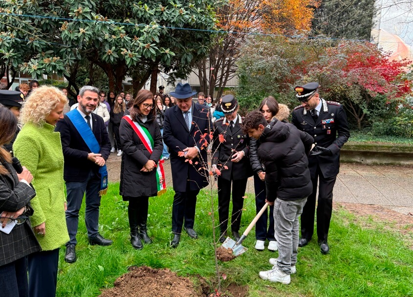 Il momento centrale della cerimonia all’Istituto “Almerico da Schio” ha visto la partecipazione del prefetto di Vicenza Filippo Romano, della dirigente scolastica Manuela Floriani, della dirigente dell’Ufficio scolastico territoriale Nicoletta Morbioli, di rappresentanti della Provincia, del Comune di Vicenza, dell’Arma dei Carabinieri e del WWF Vicenza-Padova. Insieme agli studenti è stato messo a dimora un esemplare di corniolo, specie nota per la fioritura precoce e i frutti ricchi di vitamina C. Alla scuola sono stati consegnati anche un castagno e un corbezzolo, che verranno piantati nel giardino esterno.