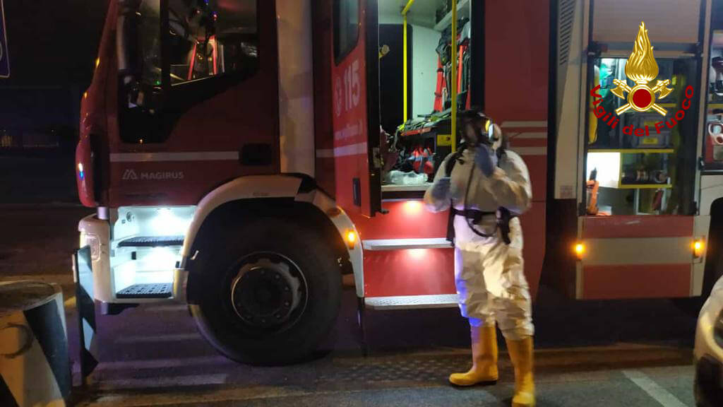 I pompieri aprono la porta di un appartamento: dentro c’è un cadavere