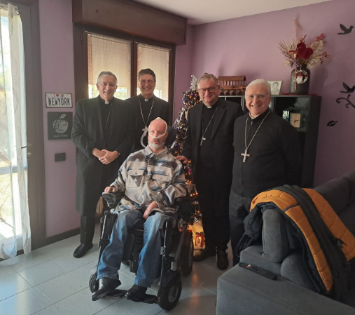 “E’ stato un incontro significativo ed importante per rispondere ad una richiesta che Stefano Gheller aveva espresso ai vescovi del Triveneto in seguito alla pubblicazione della nota ‘Suicidio assistito o malati assistiti?’. E’ una persona che, pur nella condizione di gravissima malattia, desidera la vita. Per questo è ancora più importante continuare sulla linea che già il Vescovo Beniamino aveva iniziato, cioè trovando spazi e tempi per stargli accanto come Chiesa. La vicinanza, soprattutto a chi è nella sofferenza, può essere espressa in tanti modi, ma quand’è possibile, una visita o una telefonata sono preferibili”. Il vescovo Giuliano Brugnotto si è espresso così dopo la prima visita nella casa di San Giuseppe di Cassola , dove vive Stefano Gheller. Oltre al Vescovo di Vicenza, nella mattinata del 29 novembre, Stefano ha accolto una piccola rappresentanza della Conferenza Episcopale Triveneta (CET): il patricarca di Venezia e presidente della CET, mons. Francesco Moraglia, il vescovo di Trieste, mons. Enrico Trevisi, delegato per la CET della Pastorale della salute, ed infine il vescovo emerito di Vicenza, mons. Beniamino Pizziol, che più volte ha incontrato Gheller.