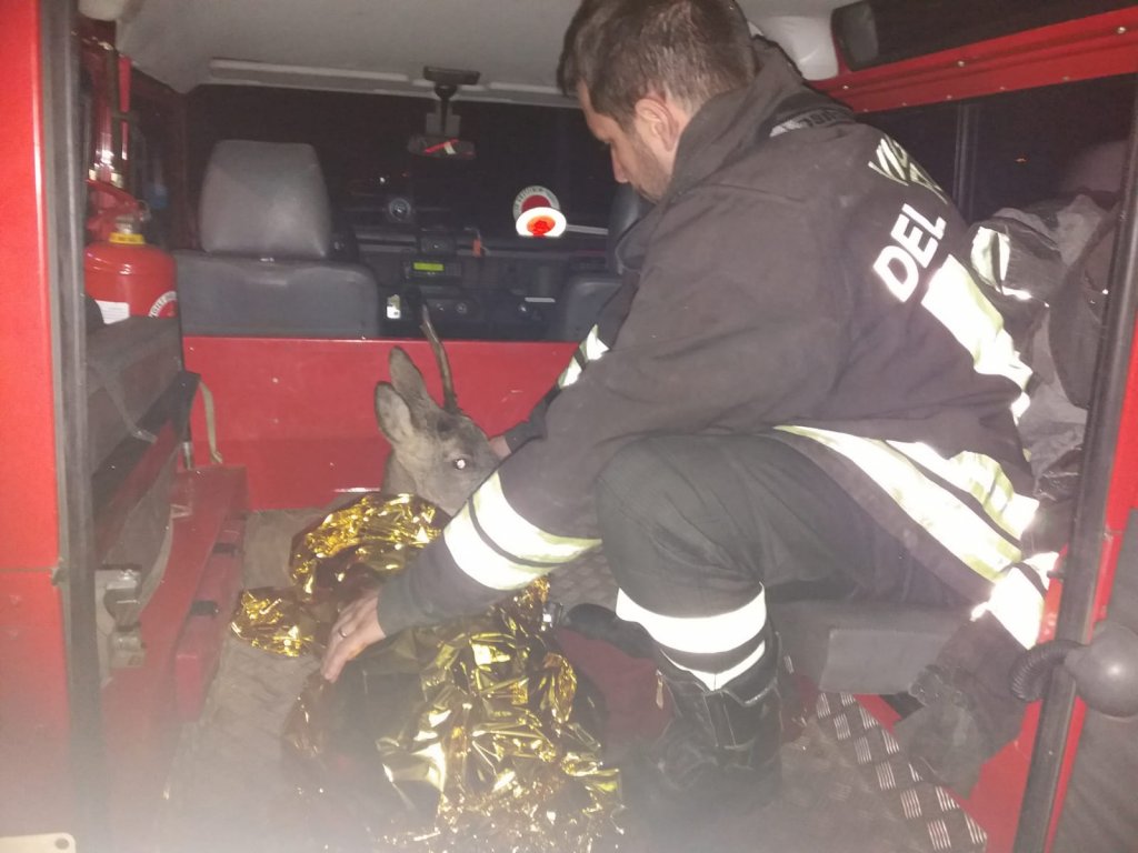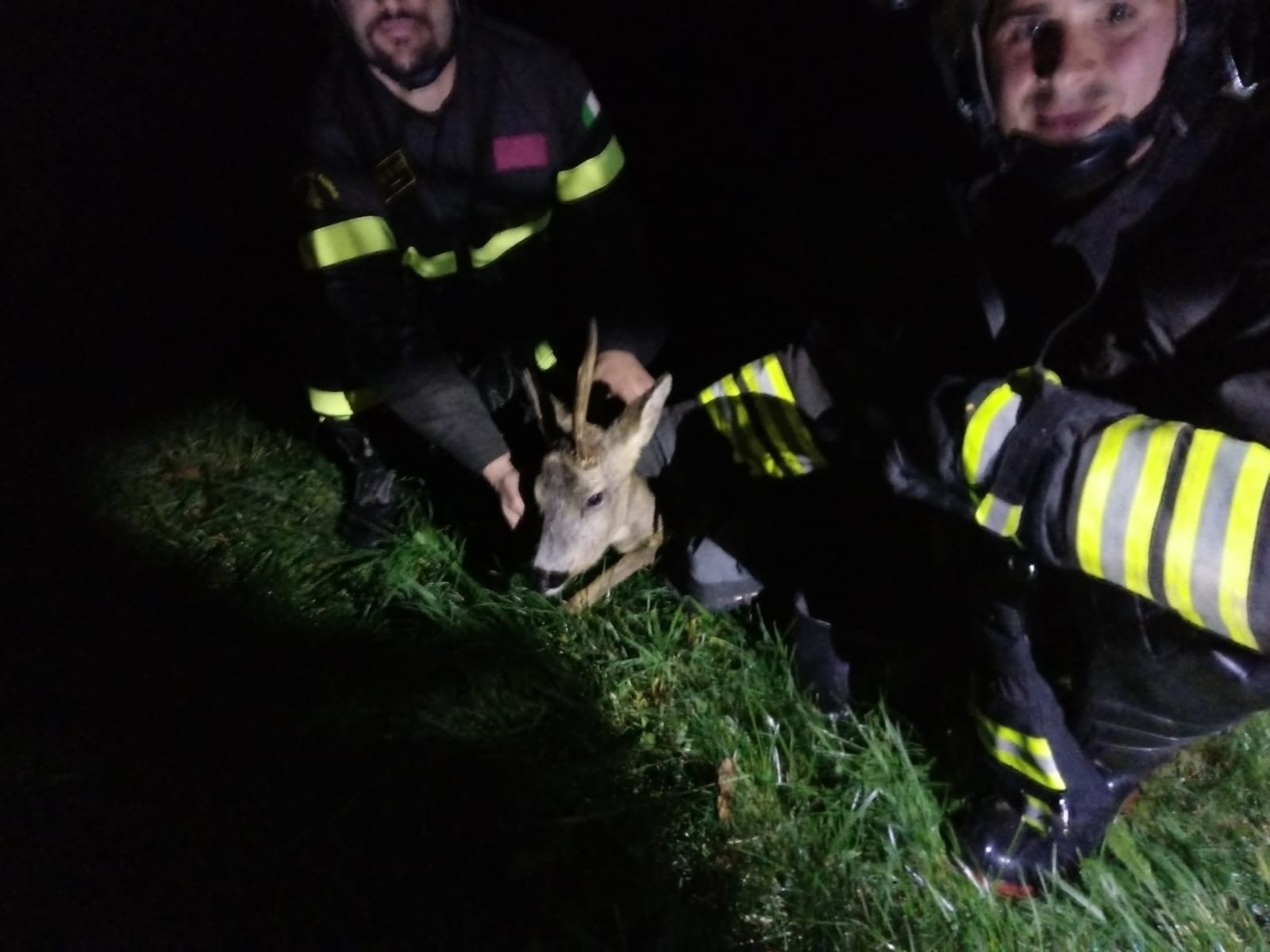 CASTELGOMBERTO – I vigili del fuoco salvano un capriolo (FOTO)
